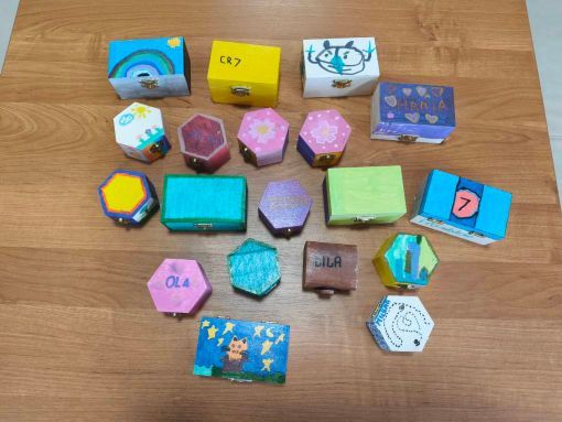 Podczas warsztatów uczestnicy: ozdabiali pudełeczka na biżuterię według własnych pomysłów – powstały małe dzieła sztuki!