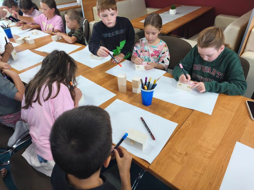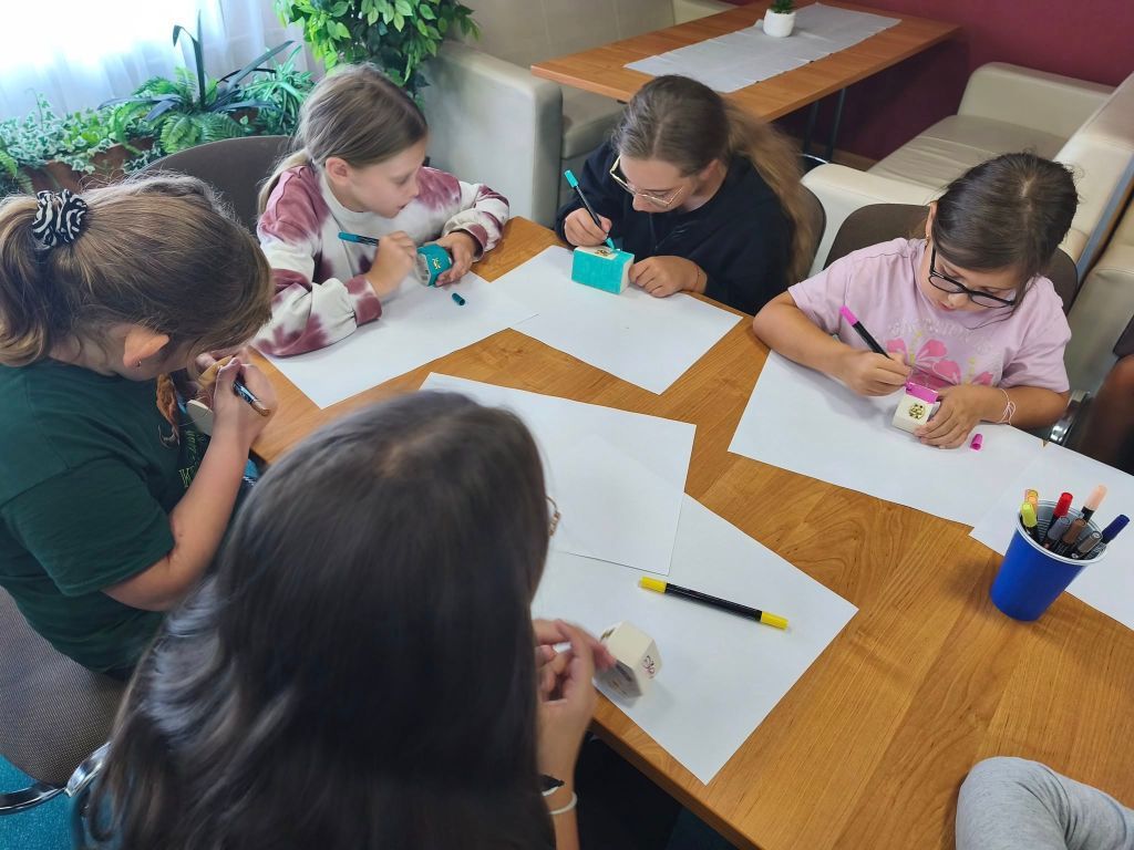 29 lipca w Gminnej Bibliotece Publicznej odbyły się kolejne zajęcia wakacyjne, które tym razem poprowadziła pani Elżbieta Półkośnik Knot-tka. Dzieci miały okazję odkryć w sobie artystycznego ducha i puścić wodze fantazji!