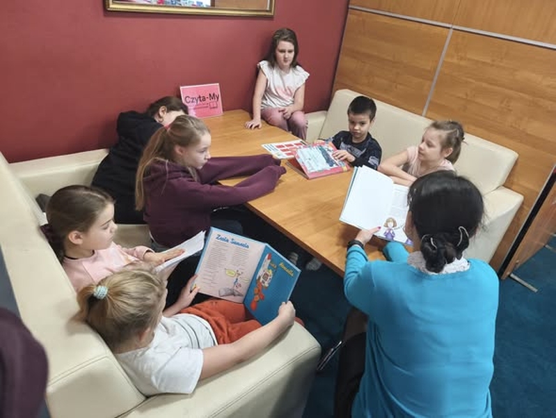 Grupa młodsza rozpoczęła spotkanie od wspólnego czytania wierszy z książki „Rady nie od parady, czyli wierszyki z morałem”. Rozmawialiśmy o tym, czym właściwie jest morał i dlaczego warto go dostrzegać w literaturze. Dzieci chętnie dzieliły się swoimi spostrzeżeniami i przykładami z życia codziennego.