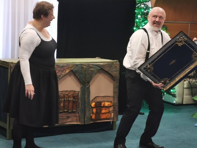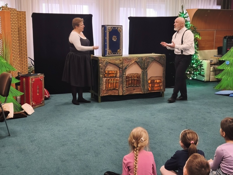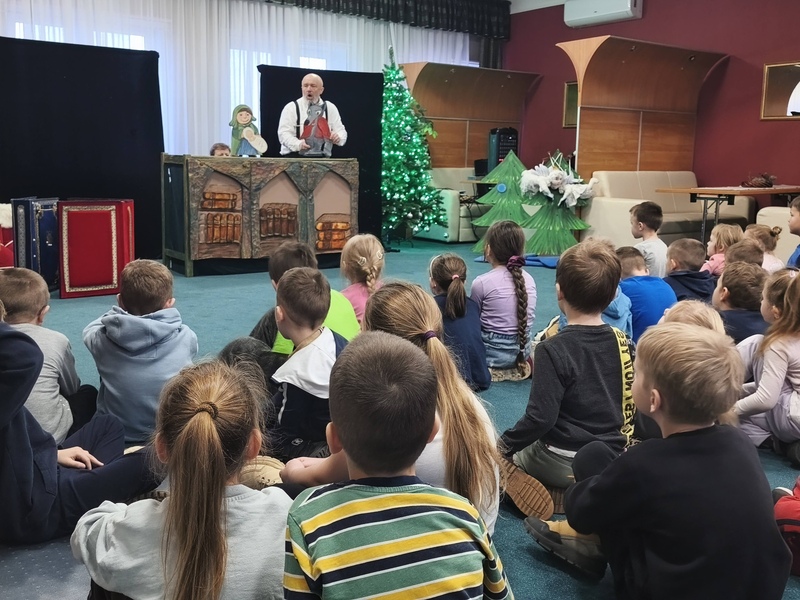12 grudnia naszą bibliotekę odwiedził Teatr Pod Orzełkiem, który zaprezentował pełne humoru, muzyki i świątecznej magii przedstawienie pt. „Bajkowa Szopka”.